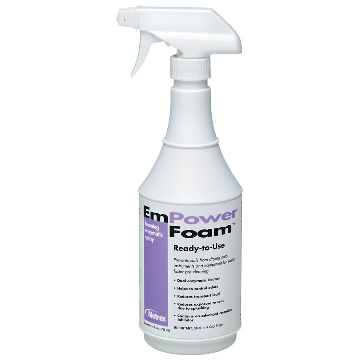 | • | A ready-to-use foaming dual enzymatic spray that starts the precleaning process chairside by breaking down blood, tissue, mucous and other protein-rich body fluids from instruments |
